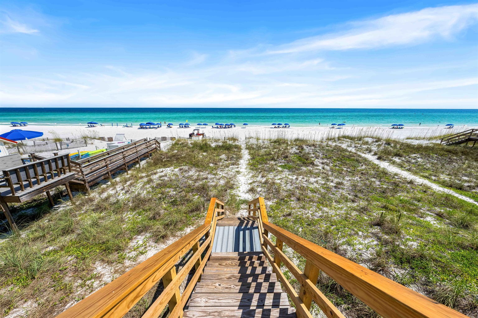 Your Private Path to the Emerald Coast: Skip the public crowds. Walk straight from the Pink Palace to your reserved chairs and umbrellas on the sand.