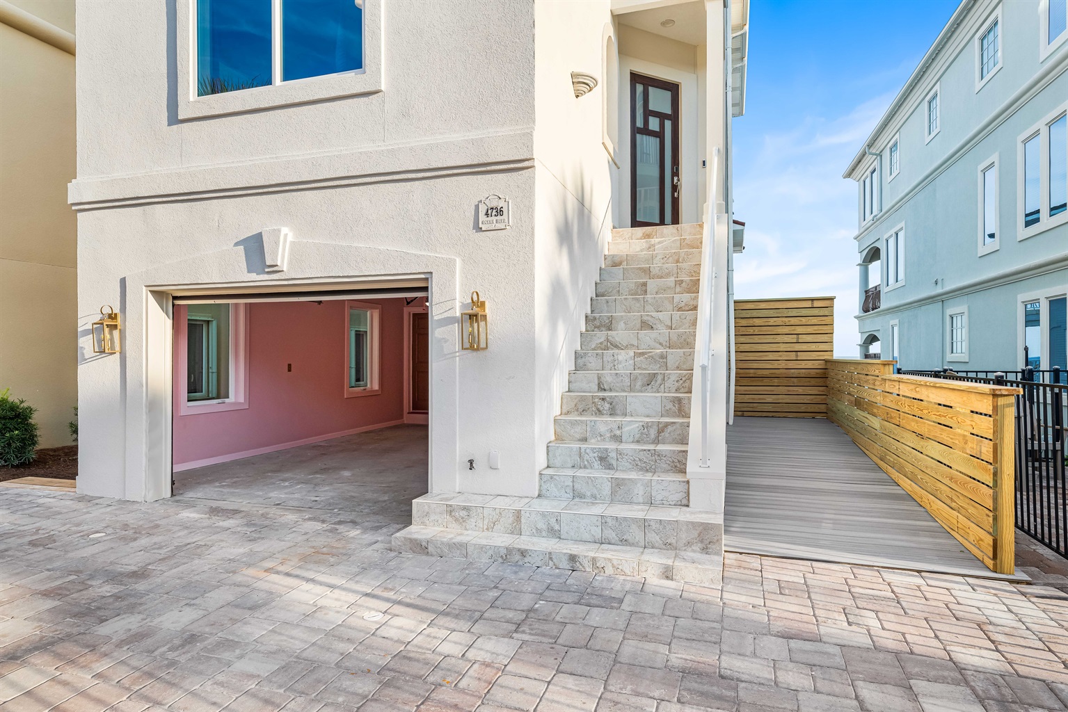 Accessible ground-floor entrance with zero-step entry, designed for easy luggage transport and multi-generational family safety in Destin.